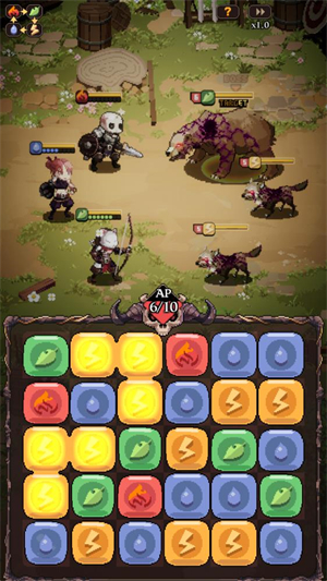 1、束缚战斗中消除方块触发角色攻击时,国际每关都会有不同波次的齿轮敌人需要应对